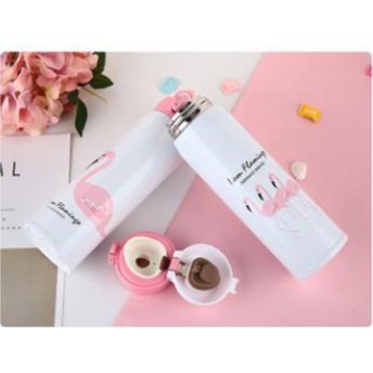 Bình giữ nhiệt lõi inox không gỉ 500ML họa tiết chim hồng hạc xinh xắn