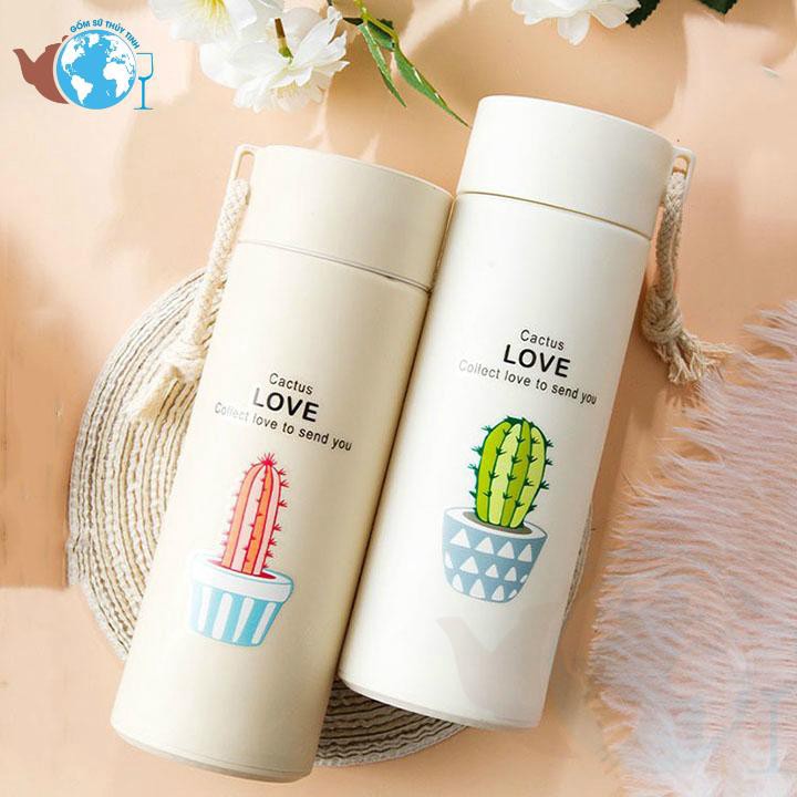 Nhà cửa & Đời sống > Bộ đồ bàn ăn > Bình nước & phụ kiện || Bình giữ nhiệt lõi thủy tinh vỏ bọc nhựa hình xương rồng 450ml kèm dây xách tiện lợiCòn hàng