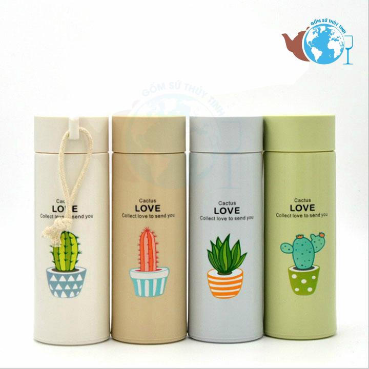 Nhà cửa & Đời sống > Bộ đồ bàn ăn > Bình nước & phụ kiện || Bình giữ nhiệt lõi thủy tinh võ bọc nhựa in hình xương rồng 450ml đặc biệt có dây xách rất tiện lợi - BGN04Còn hàng