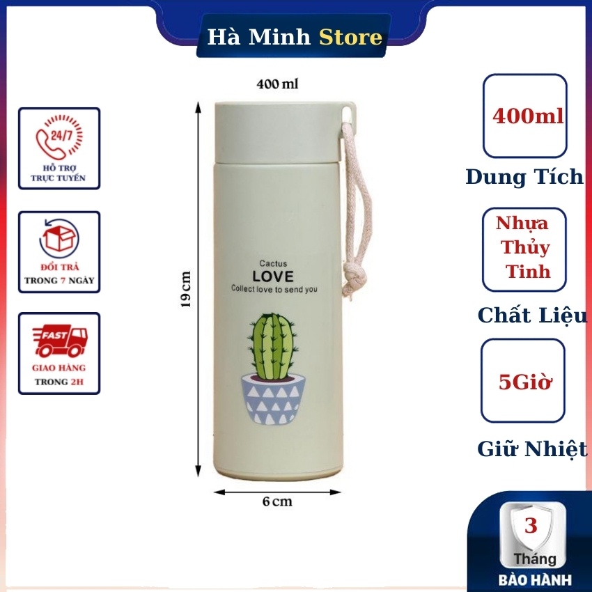 Bình Giữ Nhiệt Lúa Mạch 450ml Họa Tiết Xương Rồng, Lõi Thủy Tinh Bọc Nhữa, Giữ Nhiệt Lên Đến 5 Giờ - Gia Dụng Hà Minh* Thông tin sản phẩm Bình giữ nhiệt thủy tinh 450ml