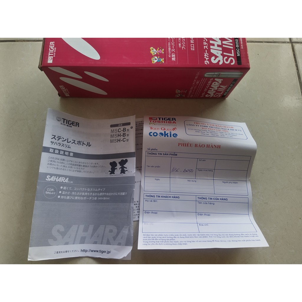 Hàng chính hãng TigerBộ sản phẩm gồm: bình giữ nhiệt Tiger MSC-B050 (0.5L), sách HDSC, phiếu bảo hành.