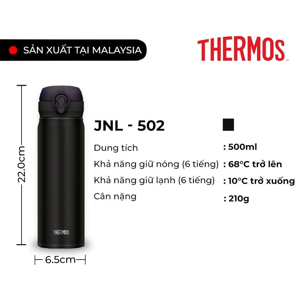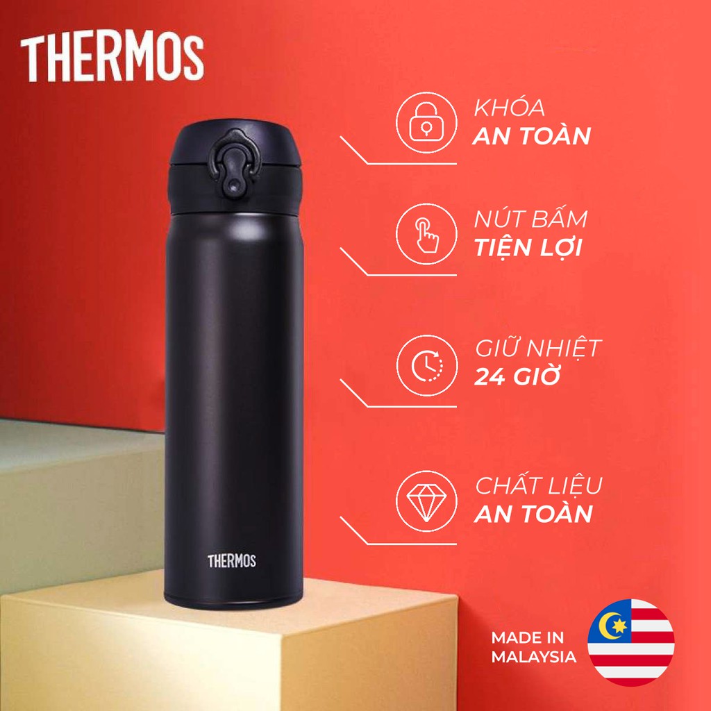 Bình giữ nhiệt số 1 Nhật Bản Thermos nút bấm 500ml. Trọng lượng siêu nhẹ, chất liệu thép không gỉ. Hàng chính hãng