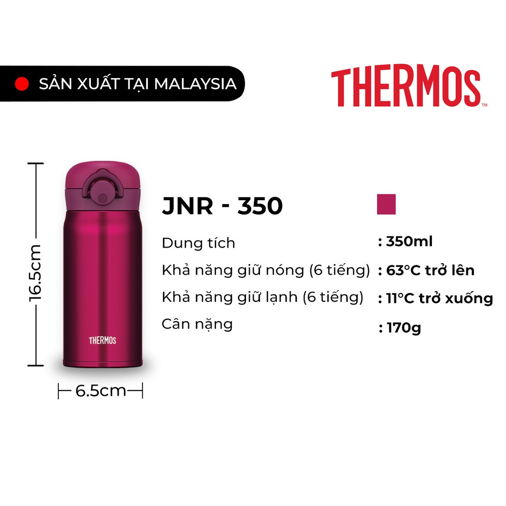 Bình giữ nhiệt số 1 Nhật Bản Thermos nút bấm 350ml. Trọng lượng siêu nhẹ, chất liệu thép không gỉ. Hàng chính hãng