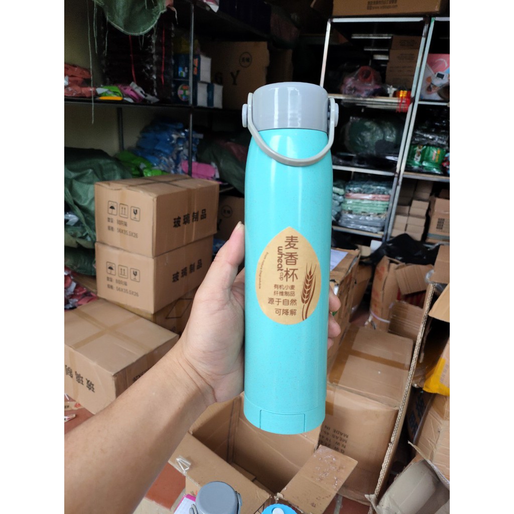 Giới thiệu BÌNH GIỮ NHIỆT NHỰA LÚA MẠCH có giá đỡ điện thoại,lõi thủy tinh