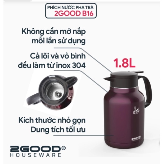 - Tên sản phẩm: Bình Ủ Nóng Lạnh 2GOOD B16 (1.8L) - Hàng Chính Hãng Giữ Nhiệt Nóng Lạnh Suốt 24h