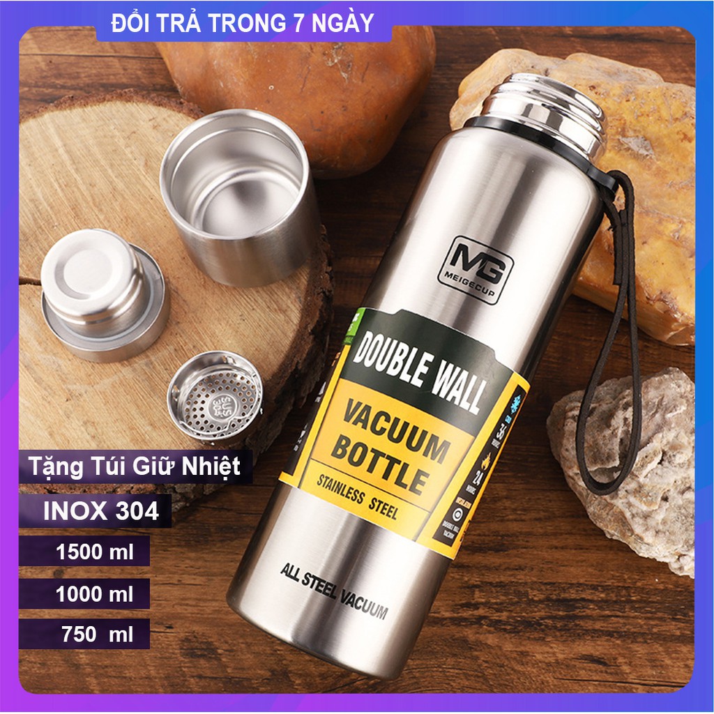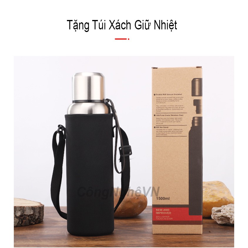 Bình Giữ Nhiệt Thép Không Gỉ 750/1000/1500ml Tặng Túi Giữ Nhiệt Bình Đựng Nước Giữ Nhiệt Inox304 , Ly Giữ Nhiệt