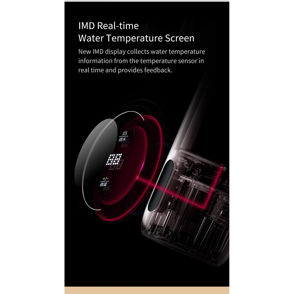 - Màn hình IMD hiển thị nhiệt độ nước thực tế, không sợ bị bỏng khi uống.