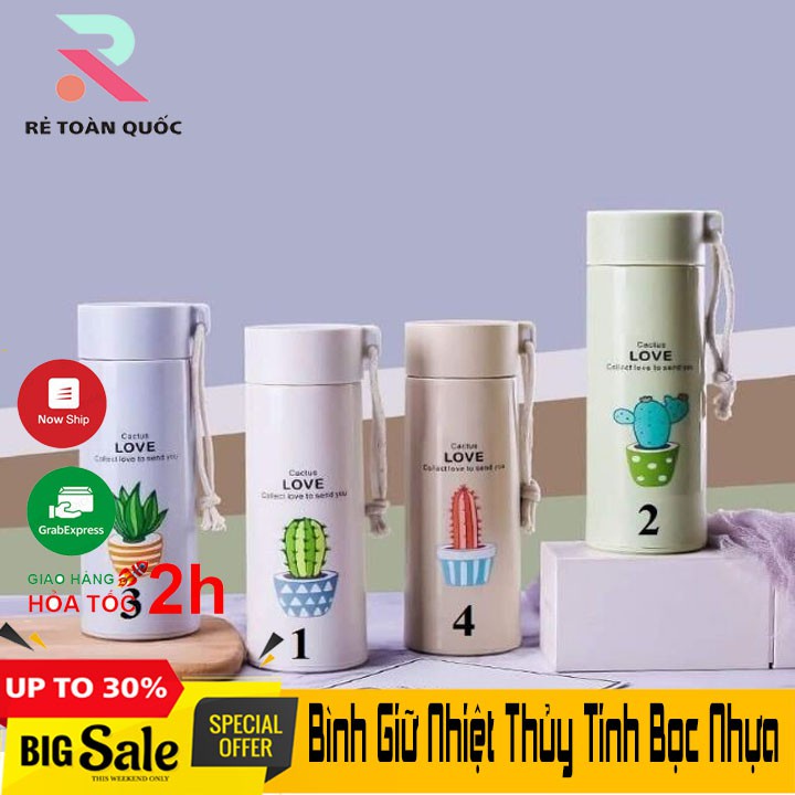 Nhà cửa & Đời sống > Bộ đồ bàn ăn > Bình nước & phụ kiện || Bình Giữ Nhiệt Thủy Tinh Bọc Nhựa Lúa Mạch 450ml Họa Tiết Xương Rồng, Chống Va Đập,Còn hàng