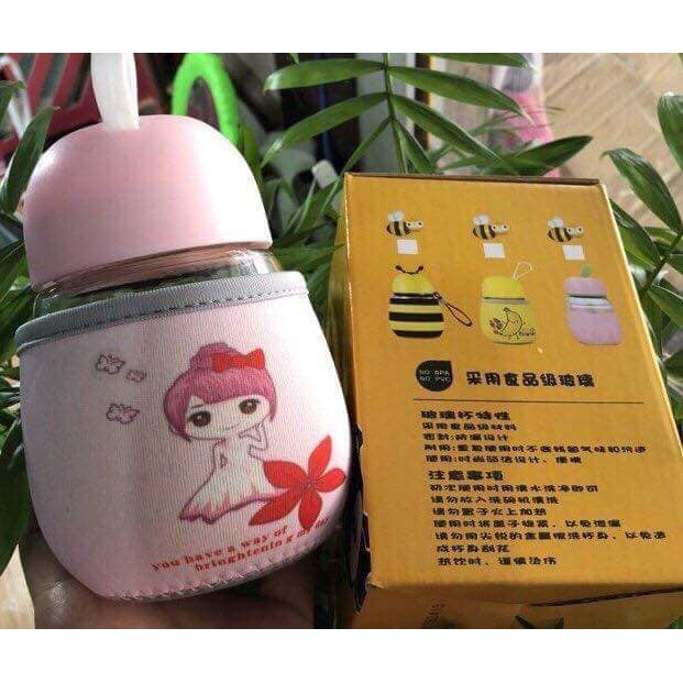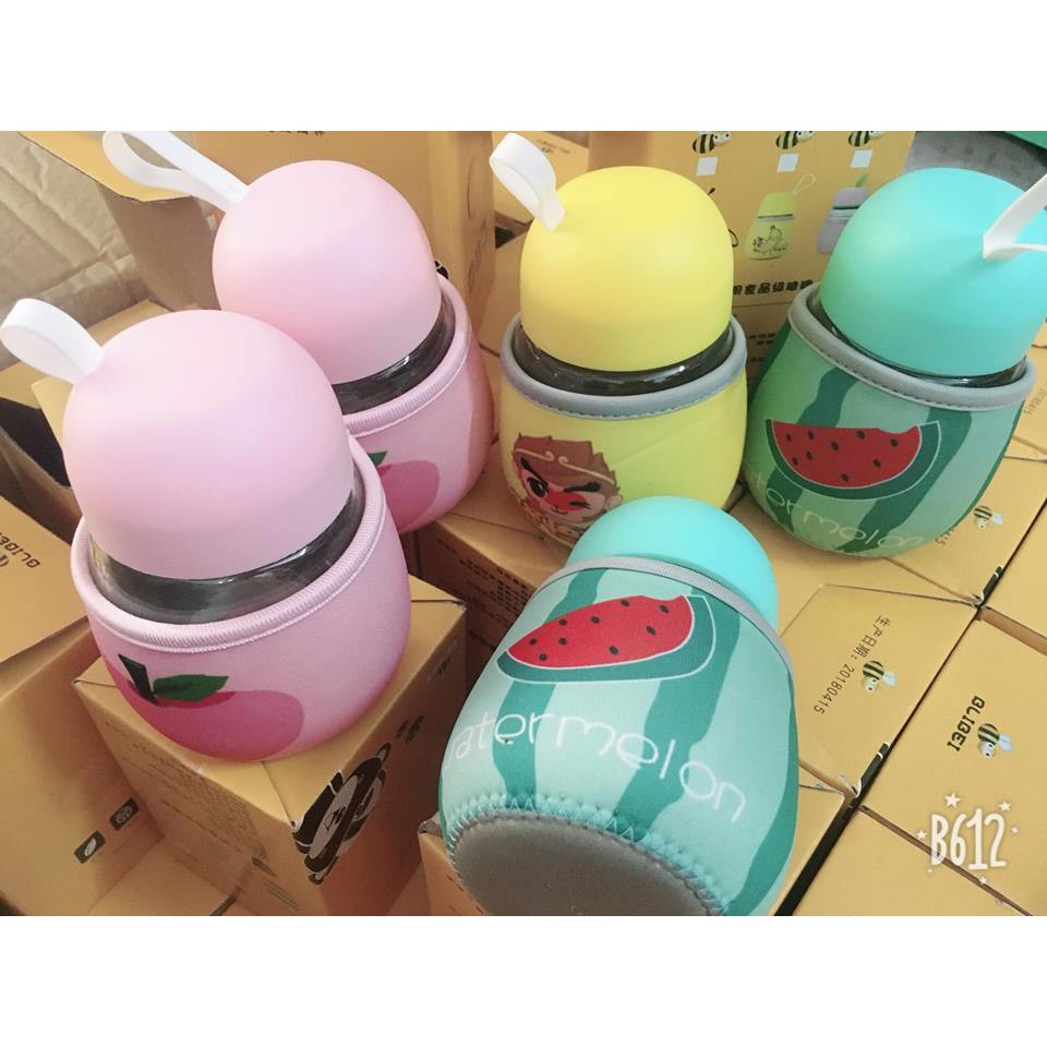 – Bình thủy tinh giữ nhiệt 320ml đáng yêu thích hợp dùng để đựng nước, sinh tố, trái cây, bánh kẹo…kể cả cháo cho bé.– Bình nước bằng chất liệu thủy tinh cao cấp, túi bọc bên ngoài bọc lớp cao su xốp có thể tháo rời, nắp đậy bằng nhựa cao cấp.