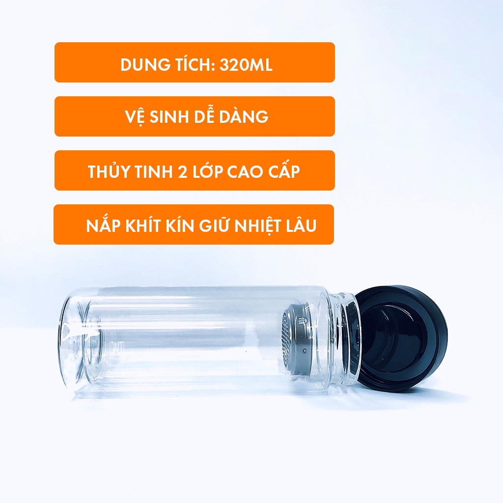 Bình Giữ Nhiệt Thủy Tinh Pha Trà SƯƠNG MAI 2 Lớp 320ml📌 THÔNG TIN SẢN PHẨM BÌNH GIỮ NHIỆT THỦY TINH: