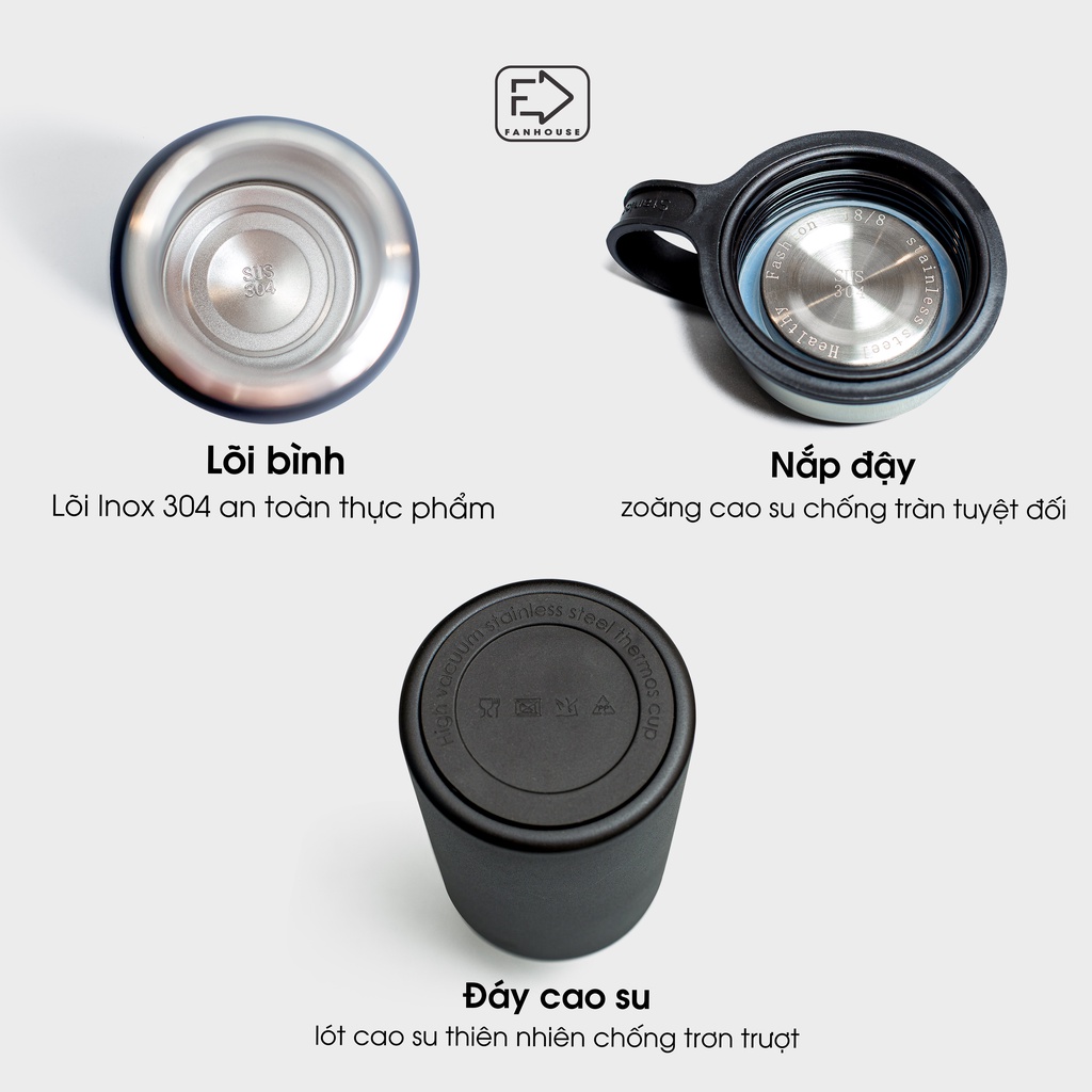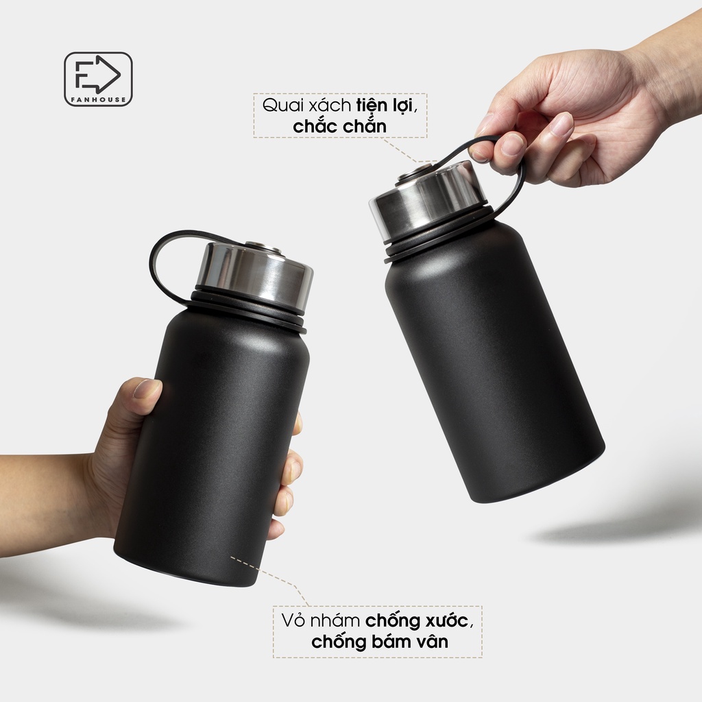 Bình giữ nhiệt Titan 3 màu chất liệu inox 304 có quai cầm Fan House khắc tên theo yêu cầu