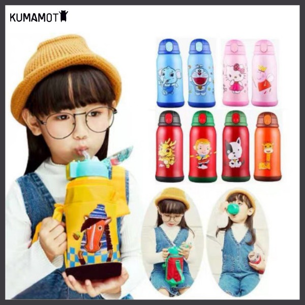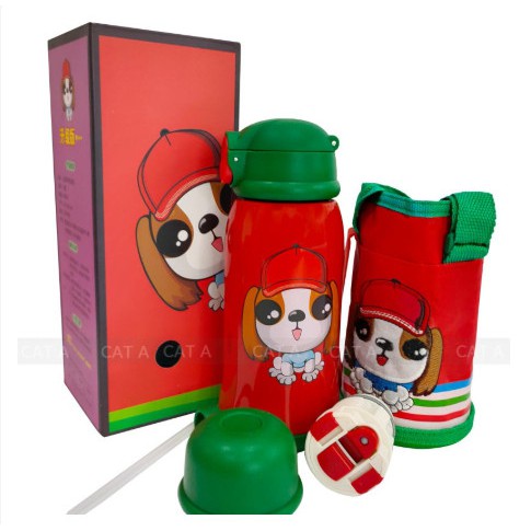 Nhà cửa & Đời sống > Bộ đồ bàn ăn > Bình nước & phụ kiện || Bình giữ nhiệt trẻ em lõi INOX316 dung tích 550ml hình thú ngộ nghĩnh - Có kèm túi vải, ống hút, 3 nắp đa năngCòn hàng