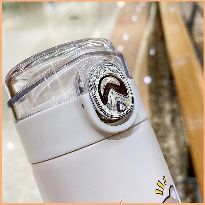 - Thiết kế vừa đáng yêu, vừa tiện dụng: Ngoài sự đáng yêu của vỏ bình, Bình Giữ Nhiệt Trong Suốt Có Nắp Chống Tràn Họa Tiết Dễ Thương 400ml còn vô cùng tiện dụng khi phần nắp được trang bị thêm phần nhựa trong suốt, nút bật bên ngoài và nút cao su bên trong với chức năng chống độ nước. Với thiết kế vô cùng tiện lợi trên, bạn dễ dàng đem theo Bình giữ nhiệt đi đến bất kỳ nơi nào, mà không lo nước bị đổ ra ngoài.