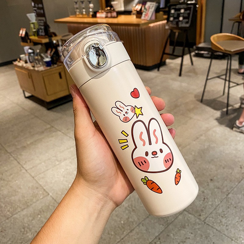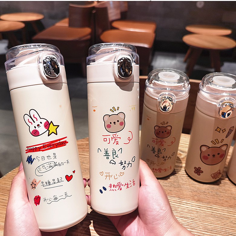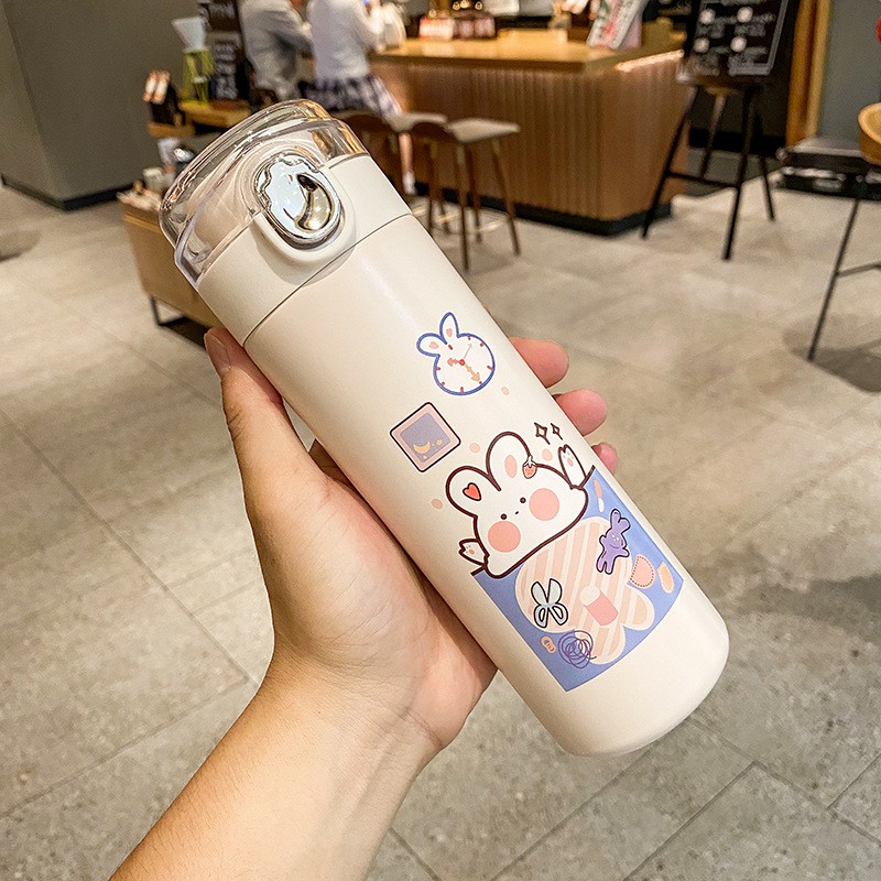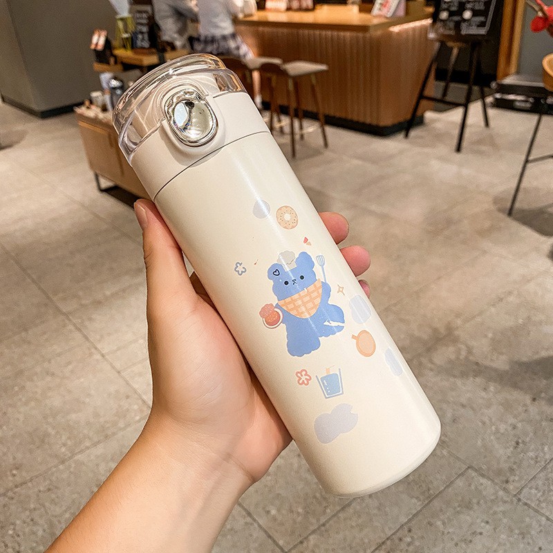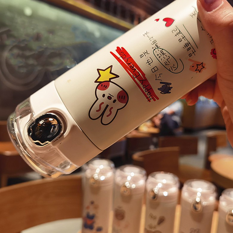 Nhà cửa & Đời sống > Bộ đồ bàn ăn > Bình nước & phụ kiện || Bình Giữ Nhiệt Trong Suốt Có Nắp Chống Tràn Họa Tiết Dễ Thương 400mlCòn hàng