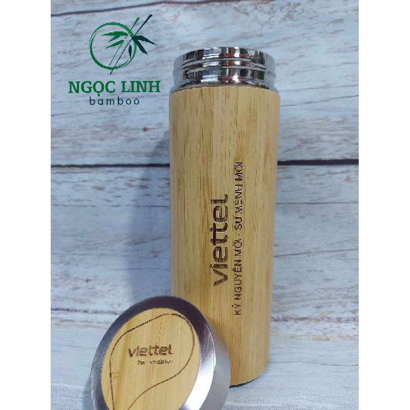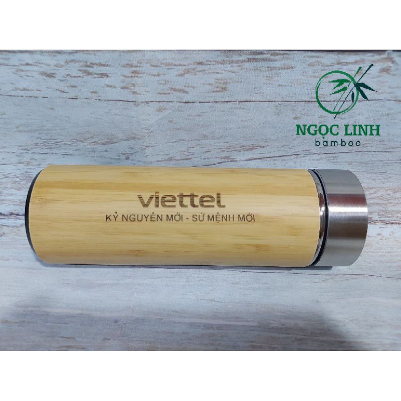 Bình giữ nhiệt vỏ tre dung tích 450ml - khắc nội dung theo yêu cầu