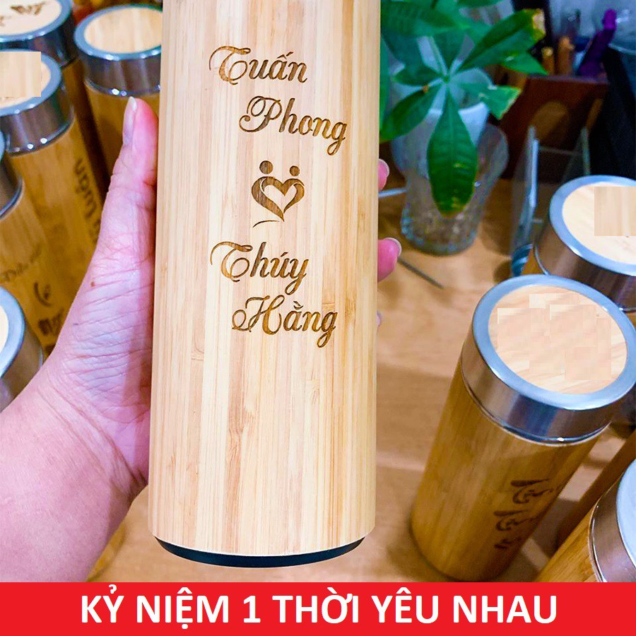Bình Giữ Nhiệt Vỏ Tre Khắc Theo Yêu Cầu