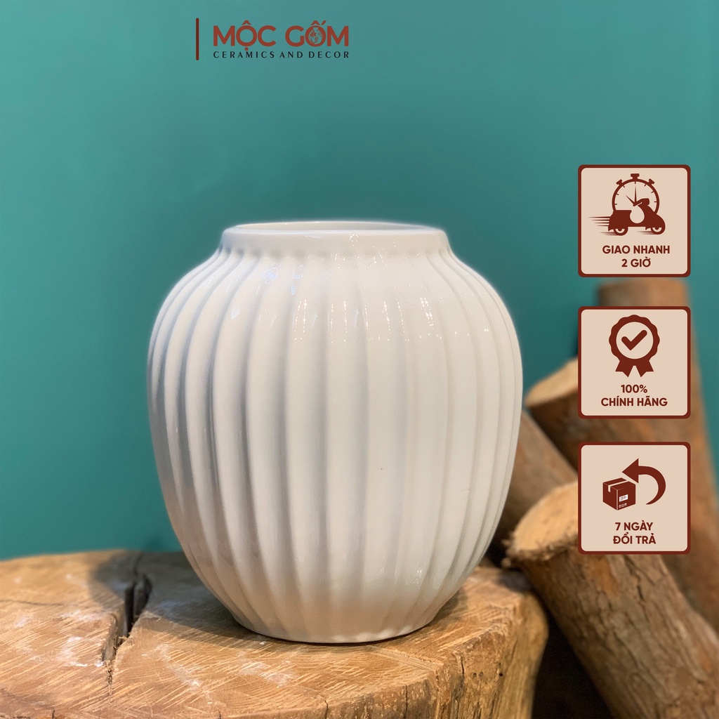 Bình gốm Bát Tràng cắm hoa dáng vò tròn vân khía men khử cao cấp trang trí đẹp Mộc Gốm MG50
