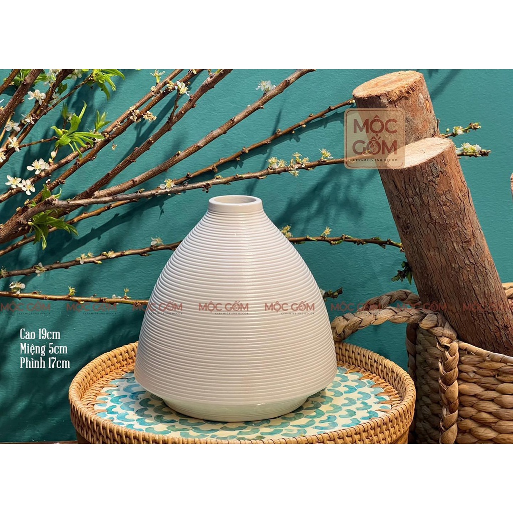 Bình gốm Bát Tràng cao cấp cắm hoa nghệ thuật dáng chân váy thân ganh vân nổi trang trí phòng khách Mộc Gốm MG77
