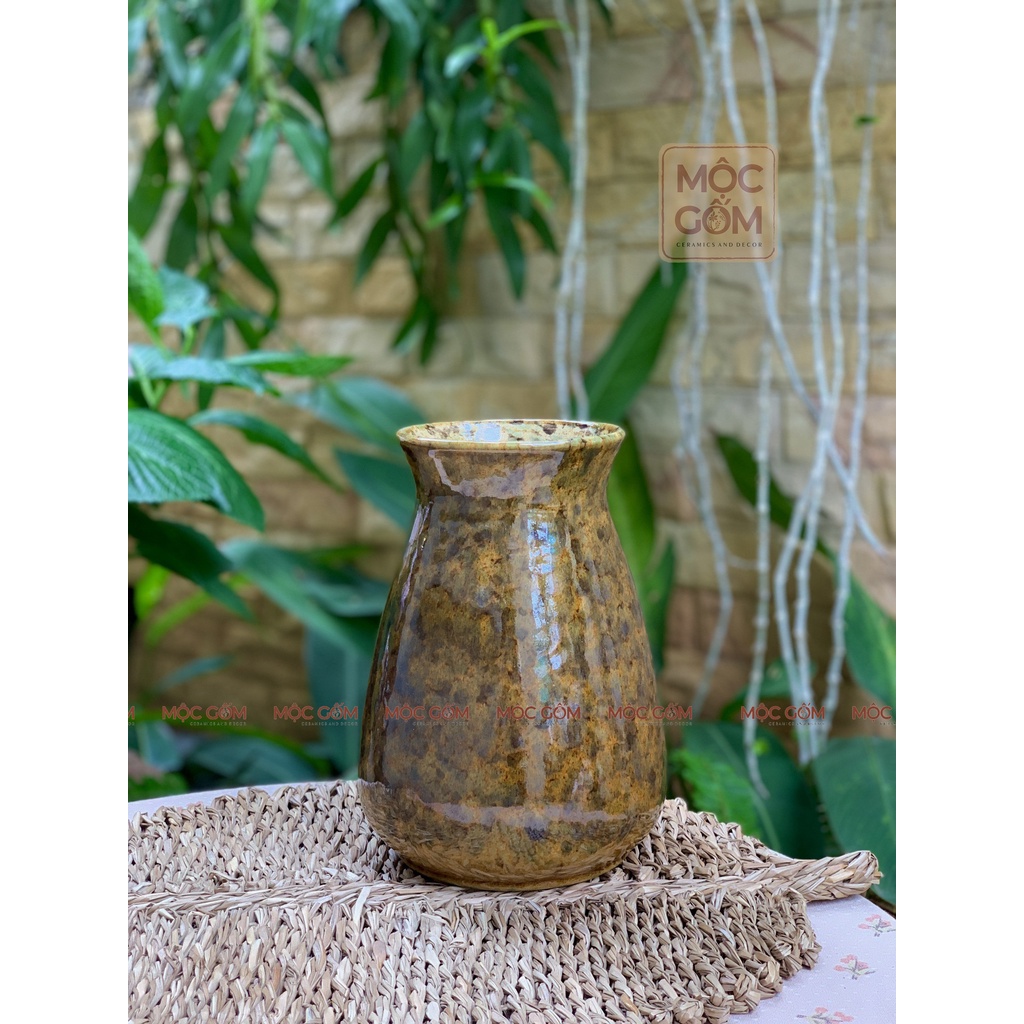 Bình gốm Bát Tràng màu men gạch cua dáng cao tầm trung cắm hoa siêu xinh trang trí nội thất Mộc Gốm Hà Nội MG114