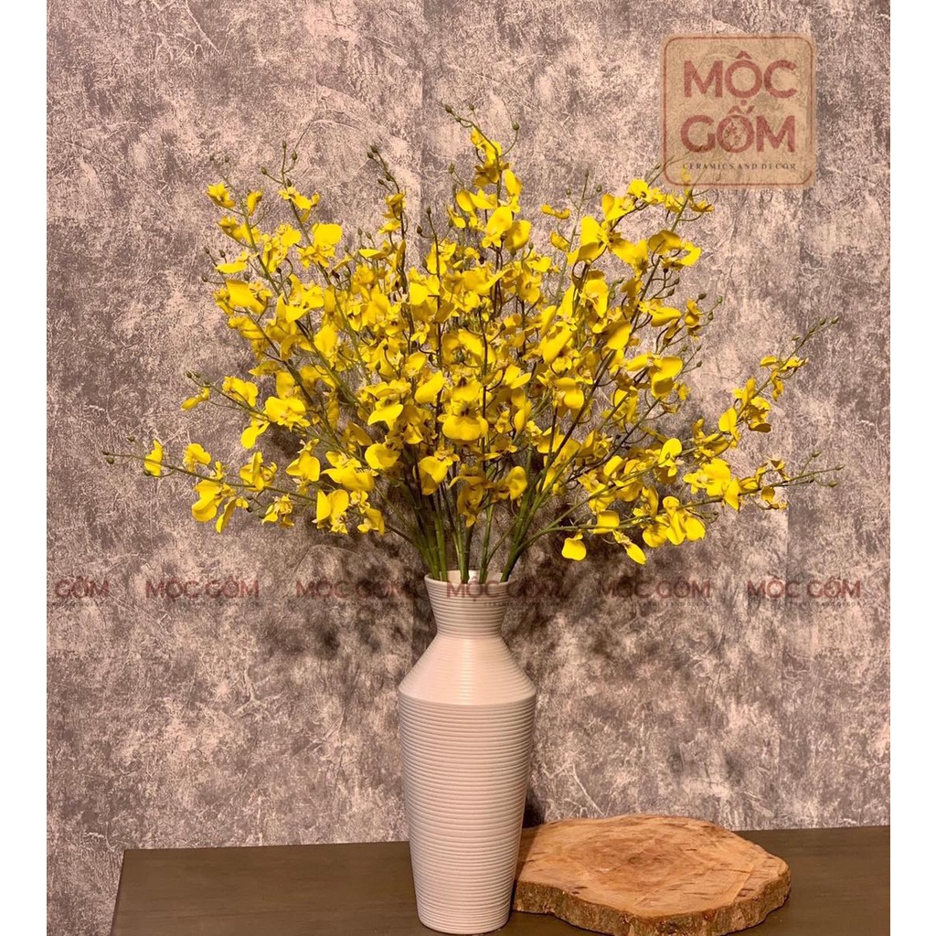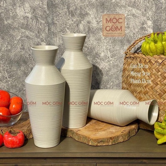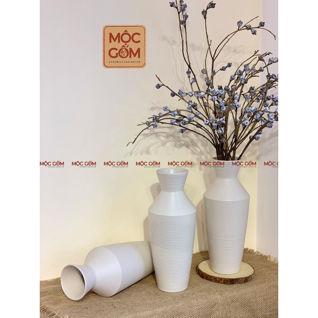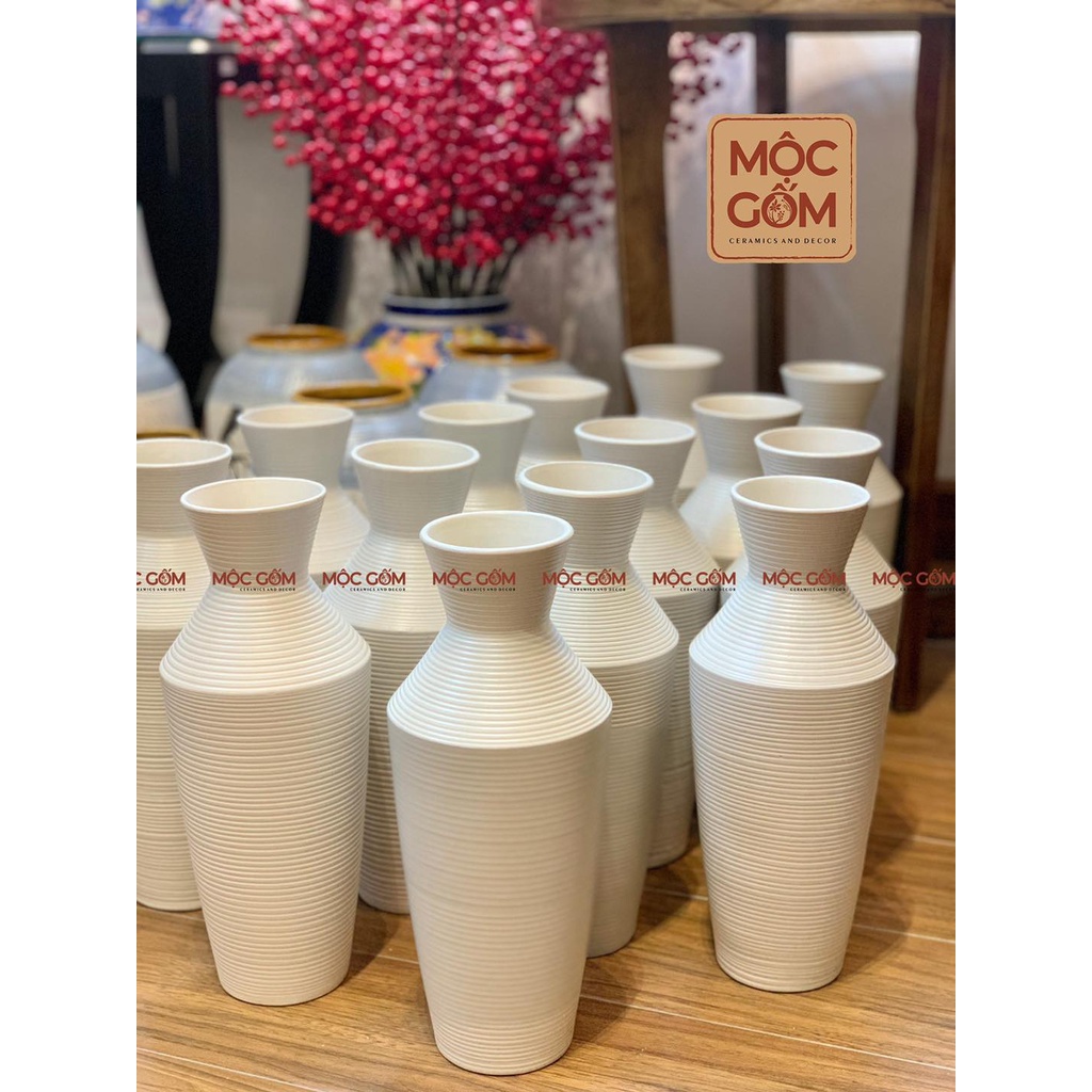 Bình gốm Bát Tràng dáng cao vân ngang men lỳ cắm hoa tuyết mai, thanh liễu, đào tròn Mộc Gốm trang trí nội thất đẹpMÔ TẢ