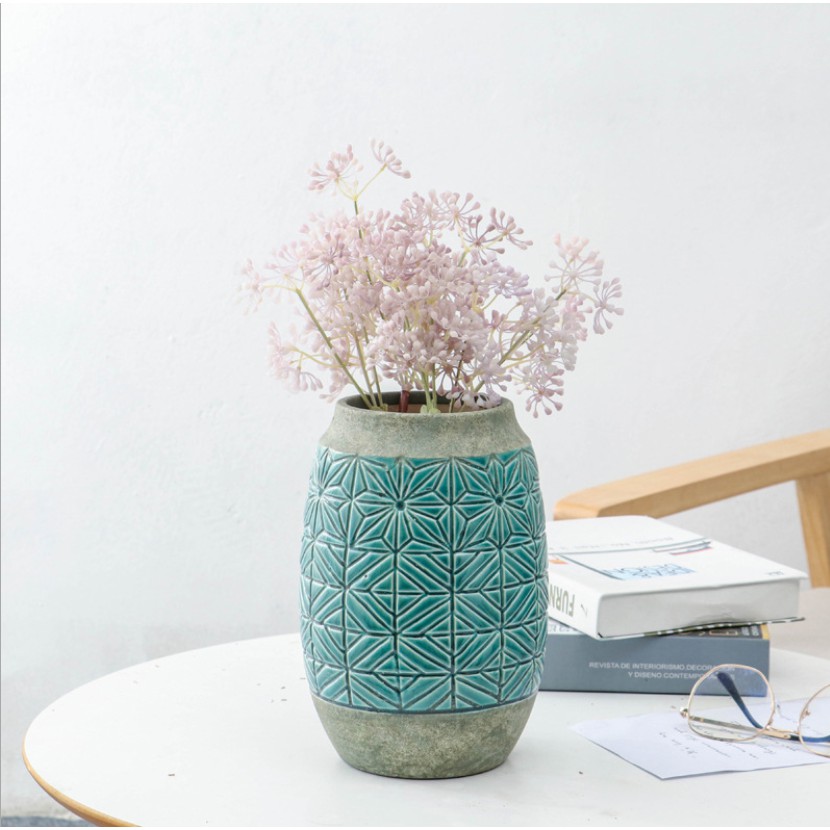 Bình gốm cắm hoa Bắc Âu cao cấp màu xanh - Lọ Gốm Cắm Hoa