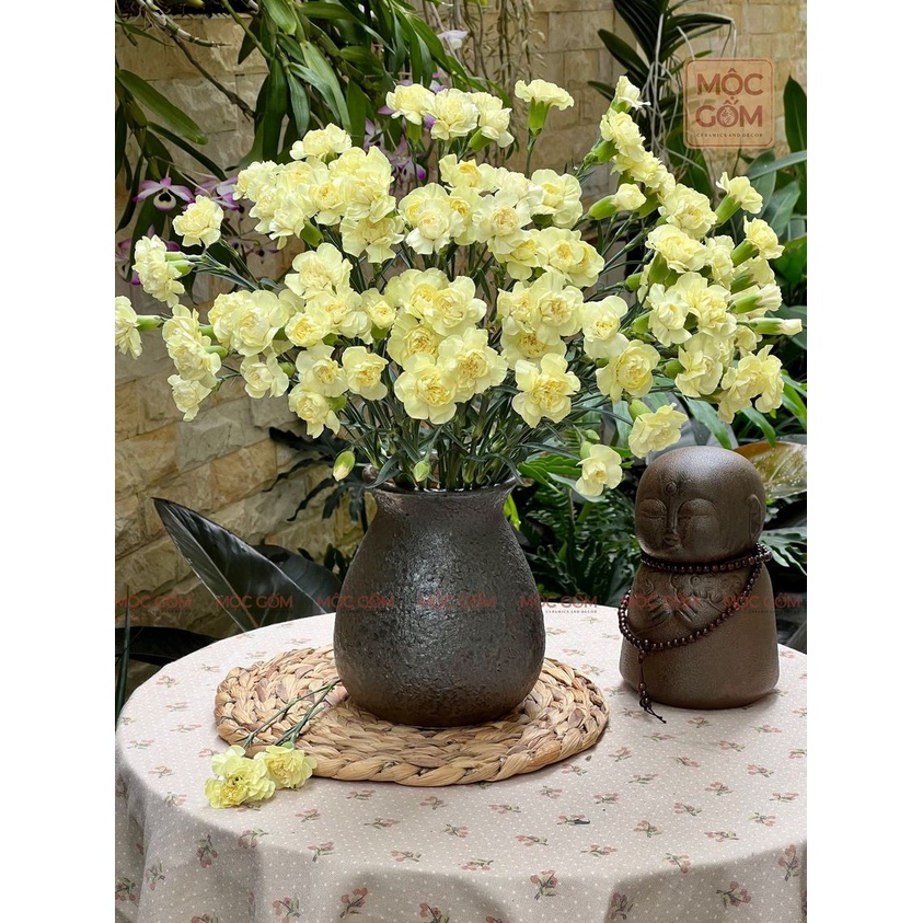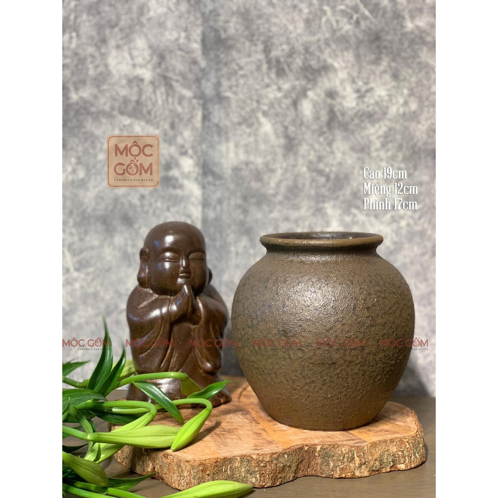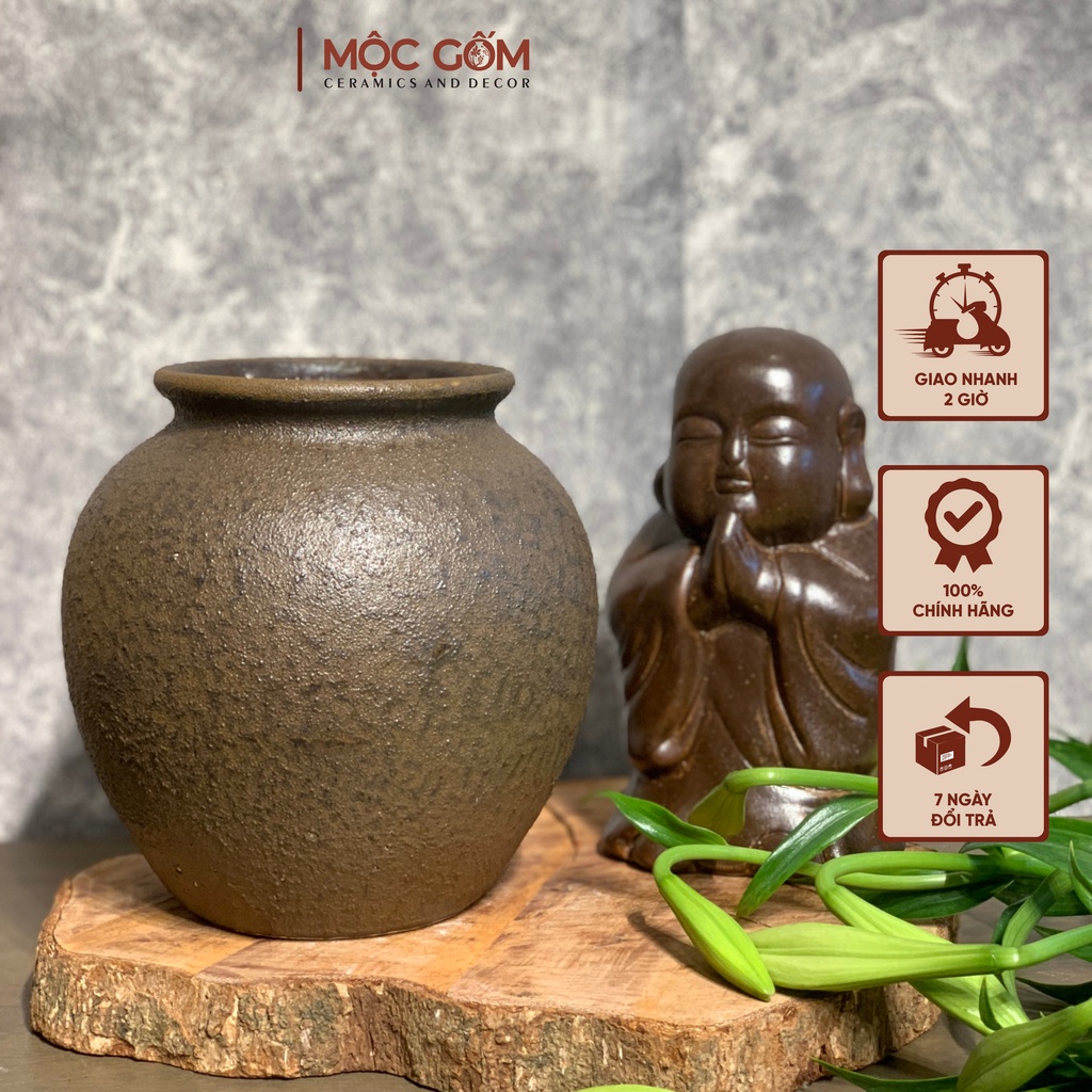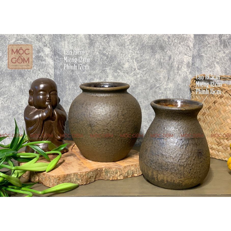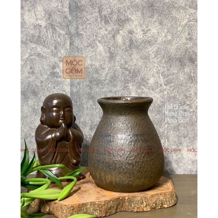 Bình gốm cắm hoa Bát Tràng dáng vò tròn men mộc cổ trang trí phòng khách đẹp Mộc Gốm MG49
