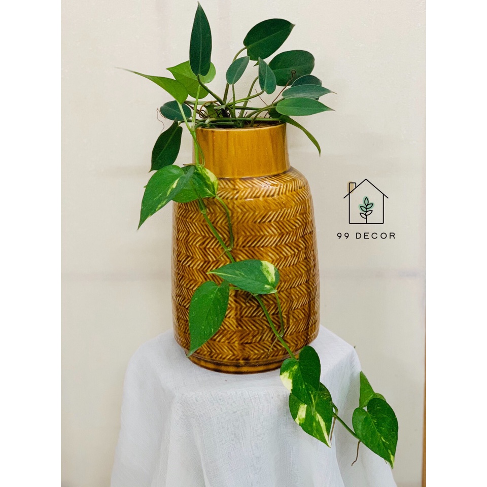 Nhà cửa & Đời sống > Trang trí nhà cửa > Bình trang trí || Bình Gốm Cắm Hoa Men Vàng Nhạt Hoạt Tiết Xương CáCòn hàng
