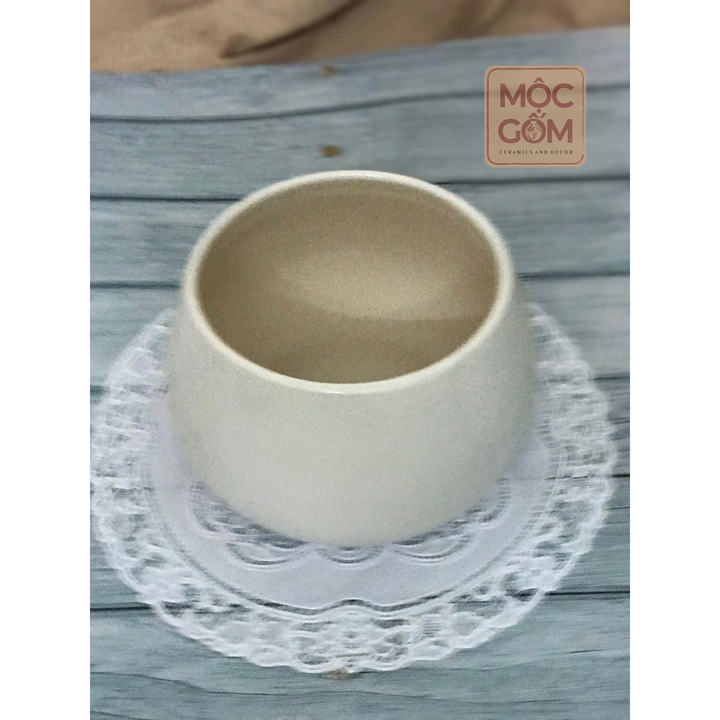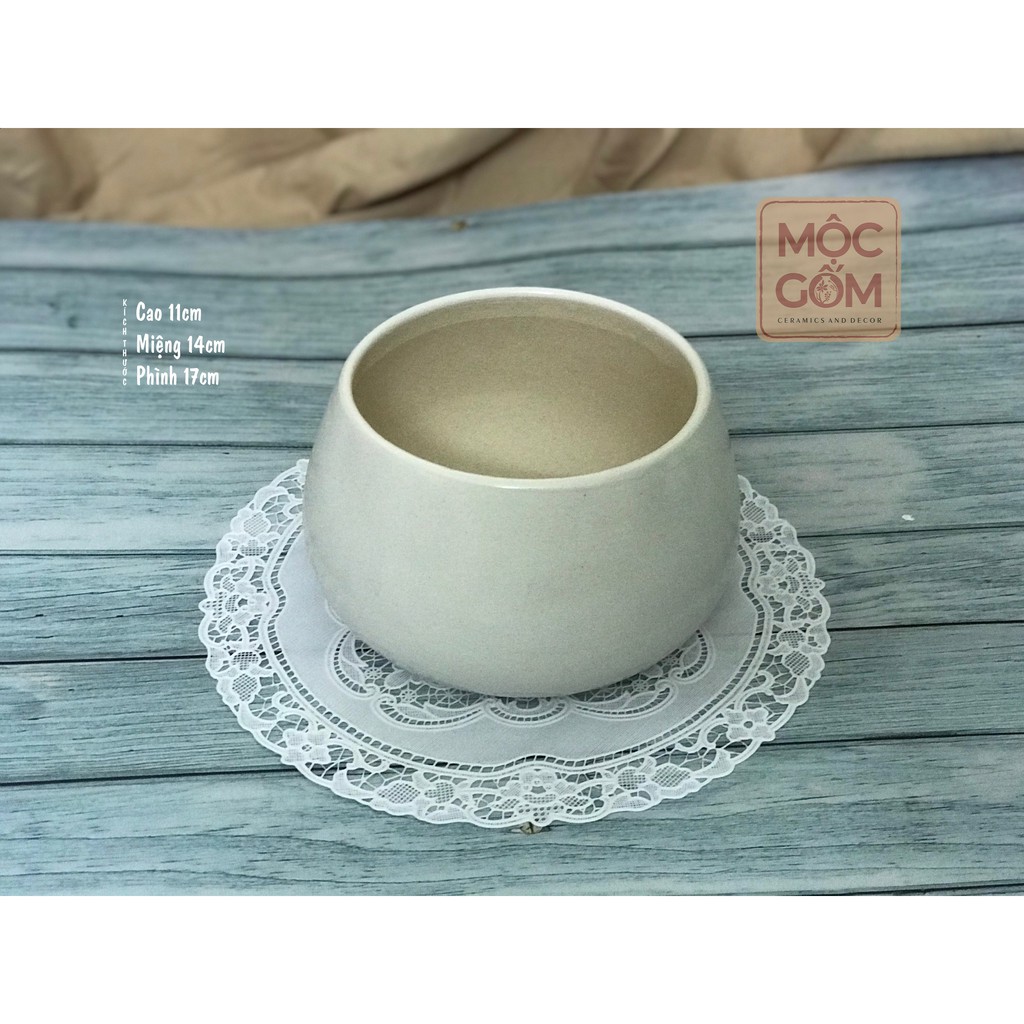 Bình gốm dáng hạt dẻ trắng to có lỗ trồng cây Bát Tràng trang trí nhà đẹp - Mộc Gốm MG64