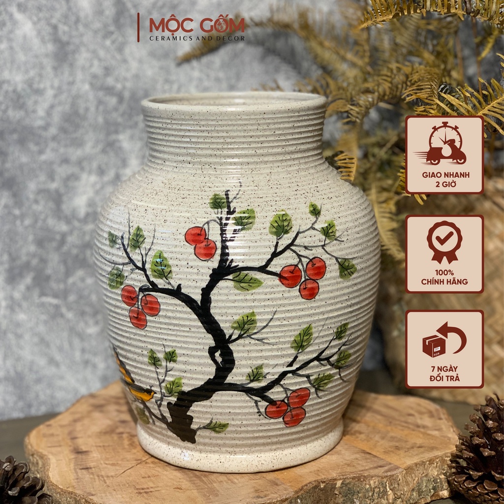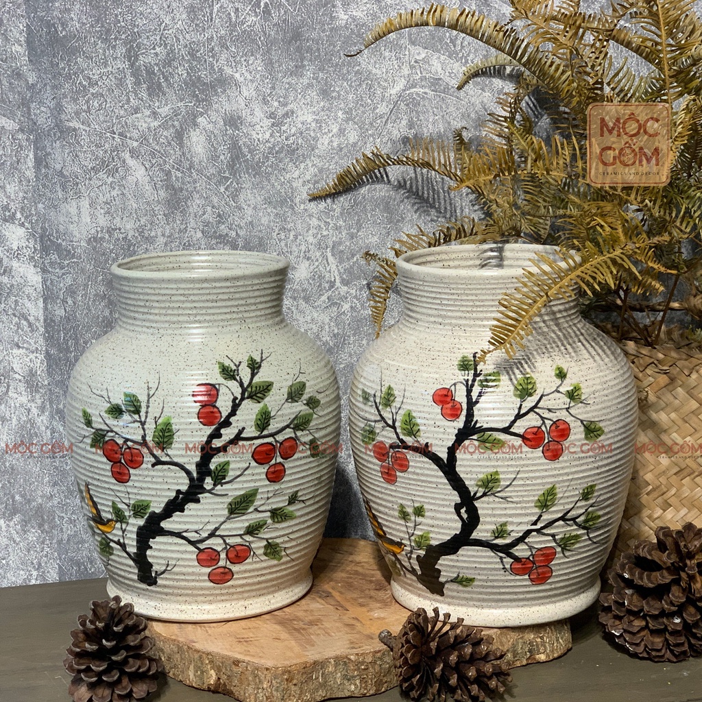 Nhà cửa & Đời sống > Trang trí nhà cửa > Bình trang trí || Bình gốm dáng vò tròn cổ cao ganh nổi vẽ họa tiết quả cherry Bát Tràng trang trí nội thất đẹp Mộc Gốm MG66Còn hàng