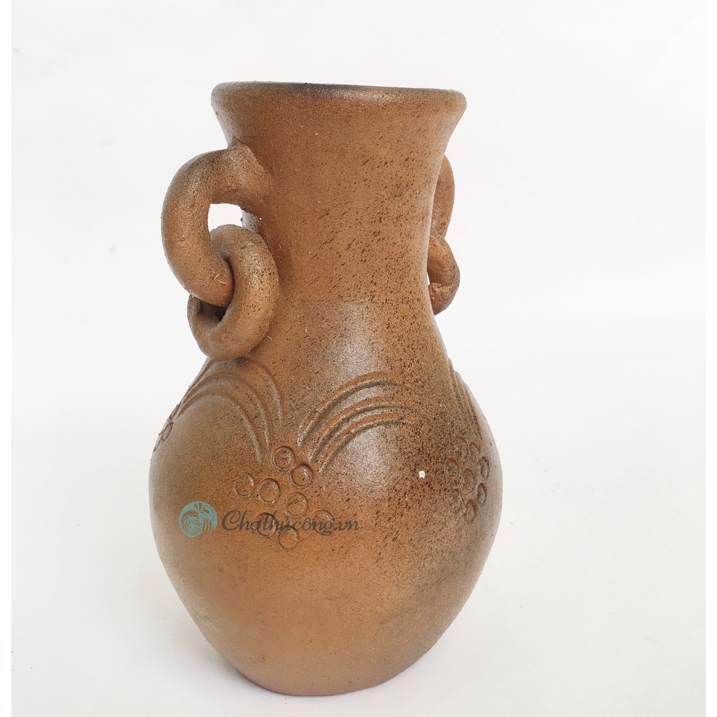 Bình gốm đất nung thủ công có quai Bàu Trúc, bình hoa Chămpa, lọ hoa decor vintage [phát mẫu ngẫu nhiên]