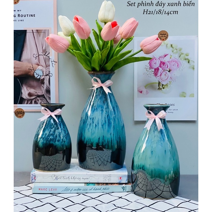 Nhà cửa & Đời sống > Trang trí nhà cửa > Bình trang trí || Bình gốm,lọ cắm hoa decor men hoả biến cao cấp(set 3 bình tặng kèm nơ buộc)Còn hàng