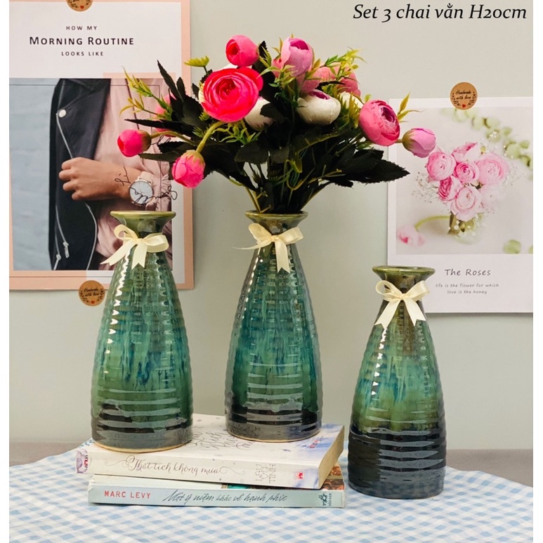 Bình gốm,lọ cắm hoa decor men hoả biến cao cấp(set 3 bình tặng kèm nơ buộc)