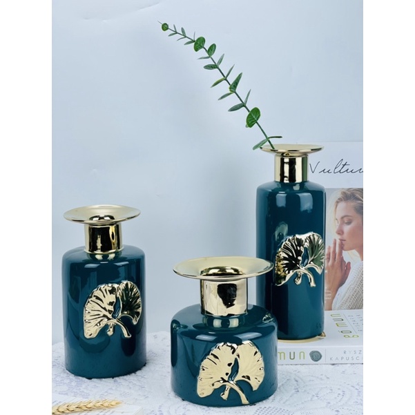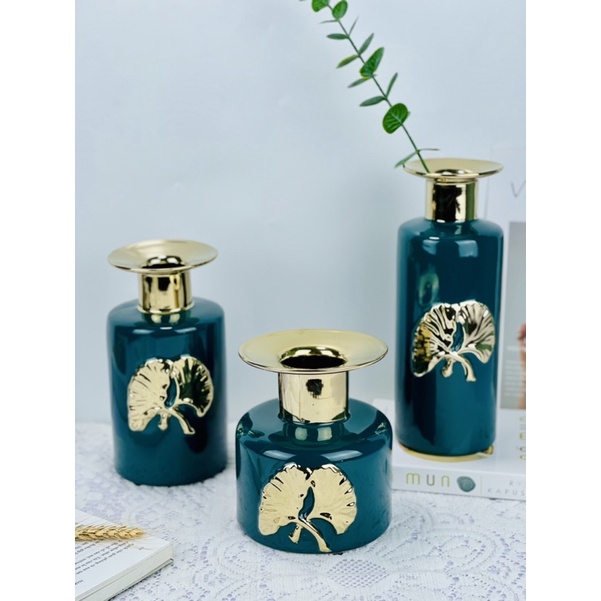 Nhà cửa & Đời sống > Trang trí nhà cửa > Bình trang trí || Bộ bình gốm,lọ cắm hoa màu xanh Bắc Âu vẽ vàng trang trí decor nhà cửa cao cấpCòn hàng
