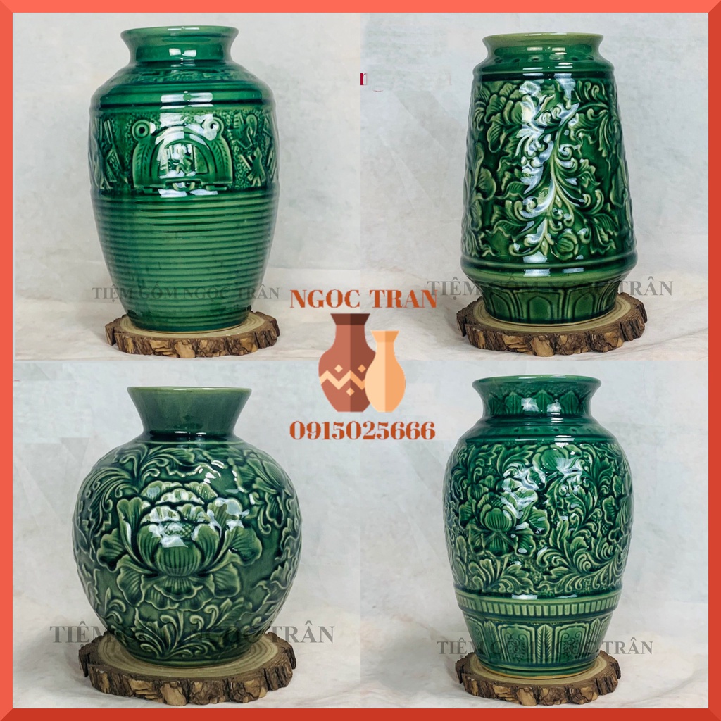 Nhà cửa & Đời sống > Trang trí nhà cửa > Bình trang trí || Bình gốm , lọ hoa gốm Phù Dung vân nổi men xanh ngọc lục bảo-gốm sứ Bát TràngCòn hàng