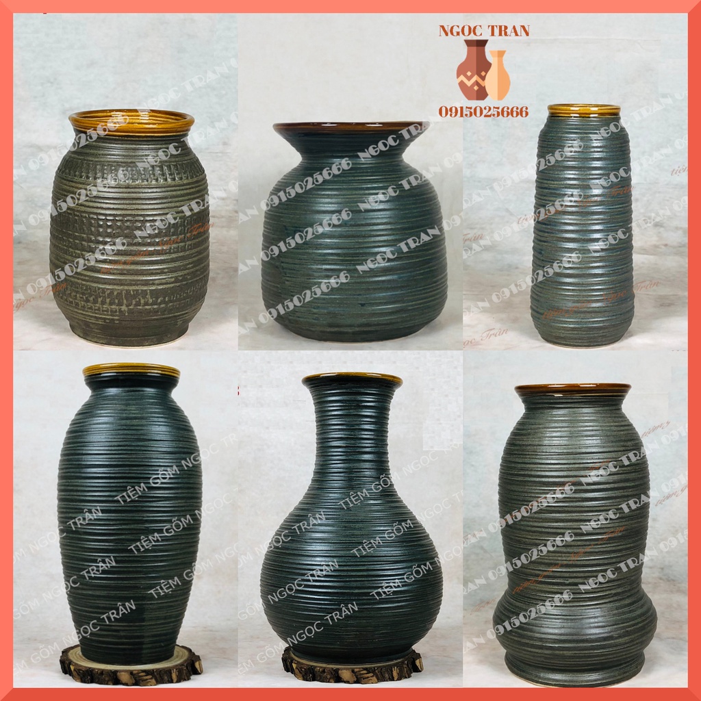 Giới thiệu Bình gốm ,lọ hoa men mộc xanh nhiều mẫu - gốm sứ Bát Tràng-tiệm gốm Ngọc Trân