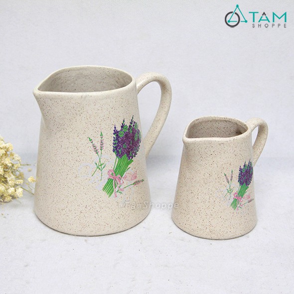 Bình gốm rót nước có quai hoạ tiết Vintage lớn nhỏ CE-BG-14 cỡ lớn