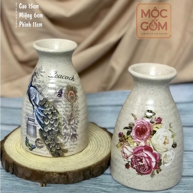 Nhà cửa & Đời sống > Trang trí nhà cửa > Bình trang trí || Bình gốm sake cắm hoa men tiêu Bát Tràng để bàn đẹp - Mộc Gốm ( DECAL HỌA TIẾT NGẪU NHIÊN) MG29Còn hàng