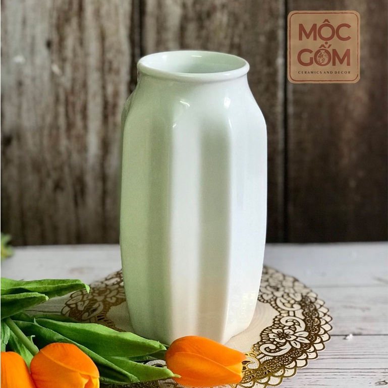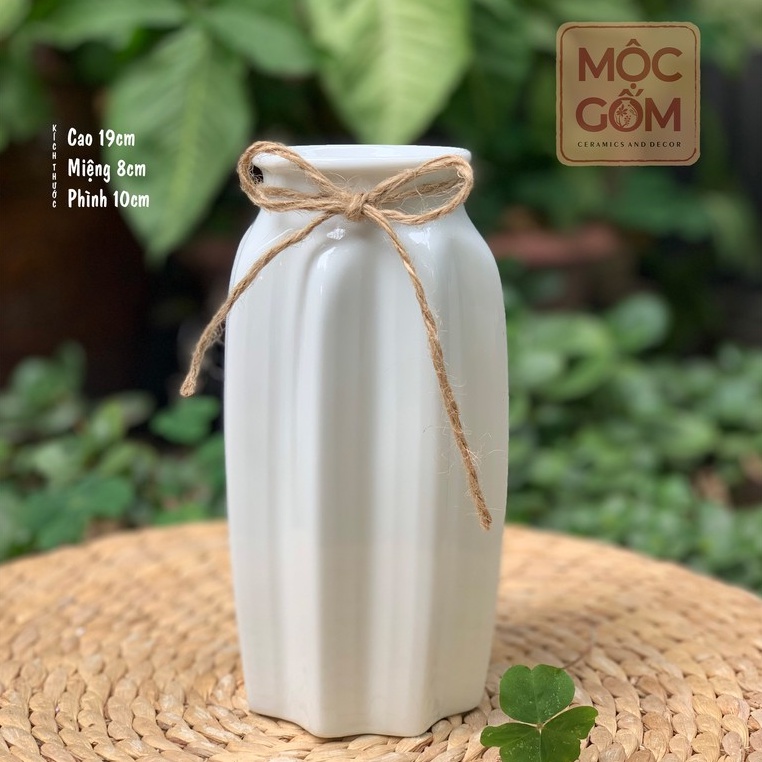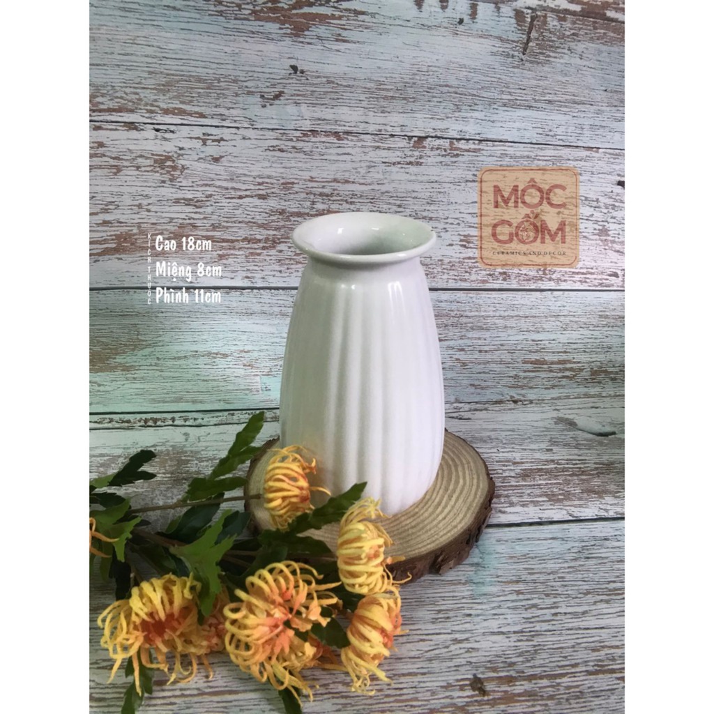 Bình gốm trắng men bóng vân khía Bát Tràng cắm hoa trang trí phòng khách đẹp - Mộc Gốm