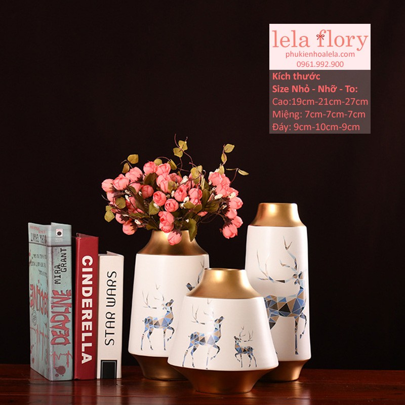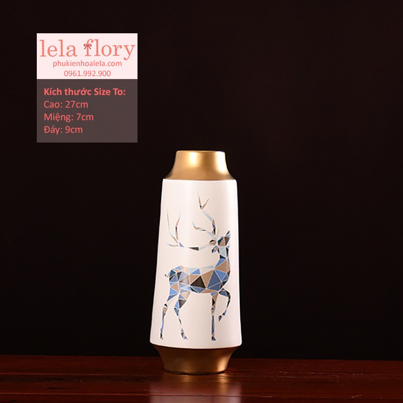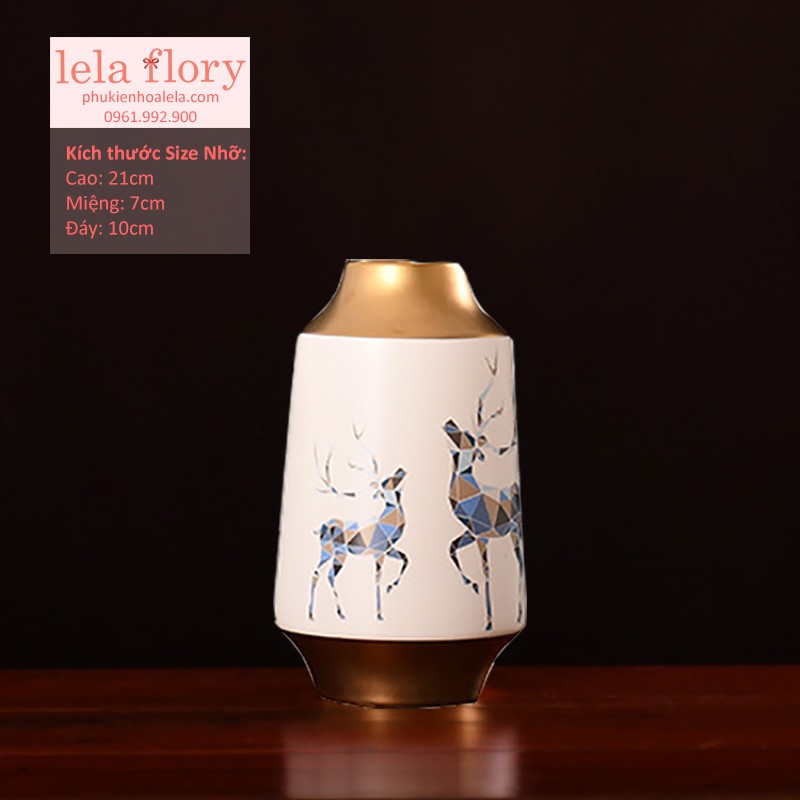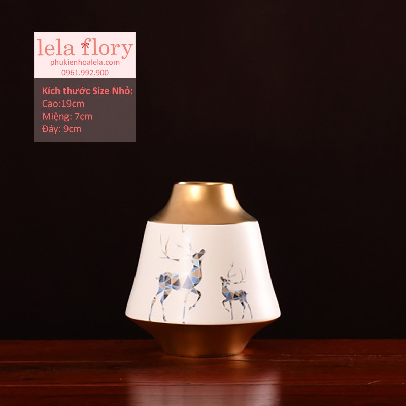 Nhà cửa & Đời sống > Trang trí nhà cửa > Bình trang trí || Bình gốm trắng pha vàng gold họa tiết hươu - LOH0346Còn hàng