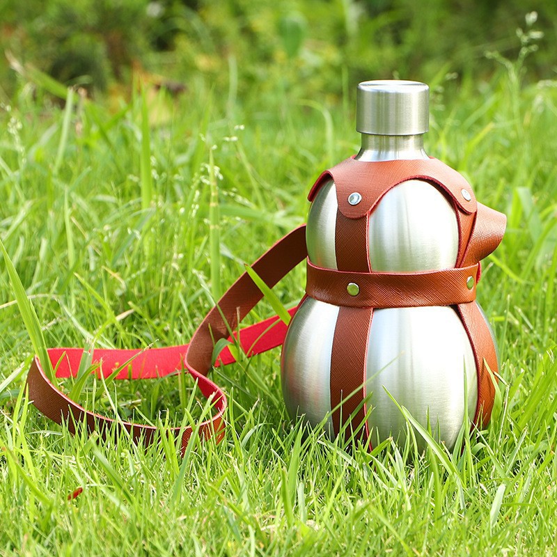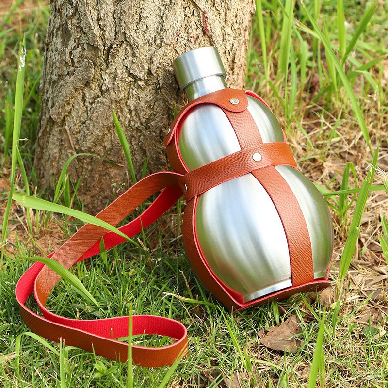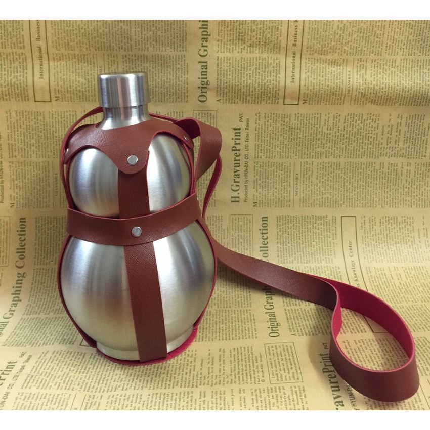 Bình hồ lô inox 2 lít, tặng kèm bao da đeo vai độc đáo & sang trọng