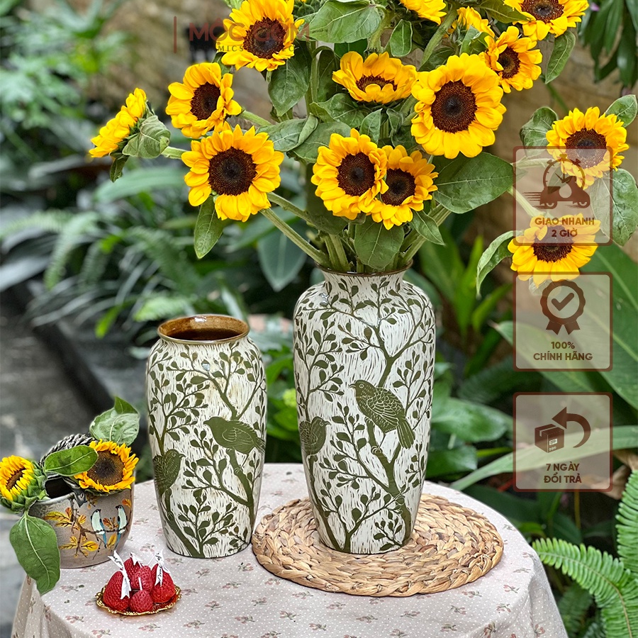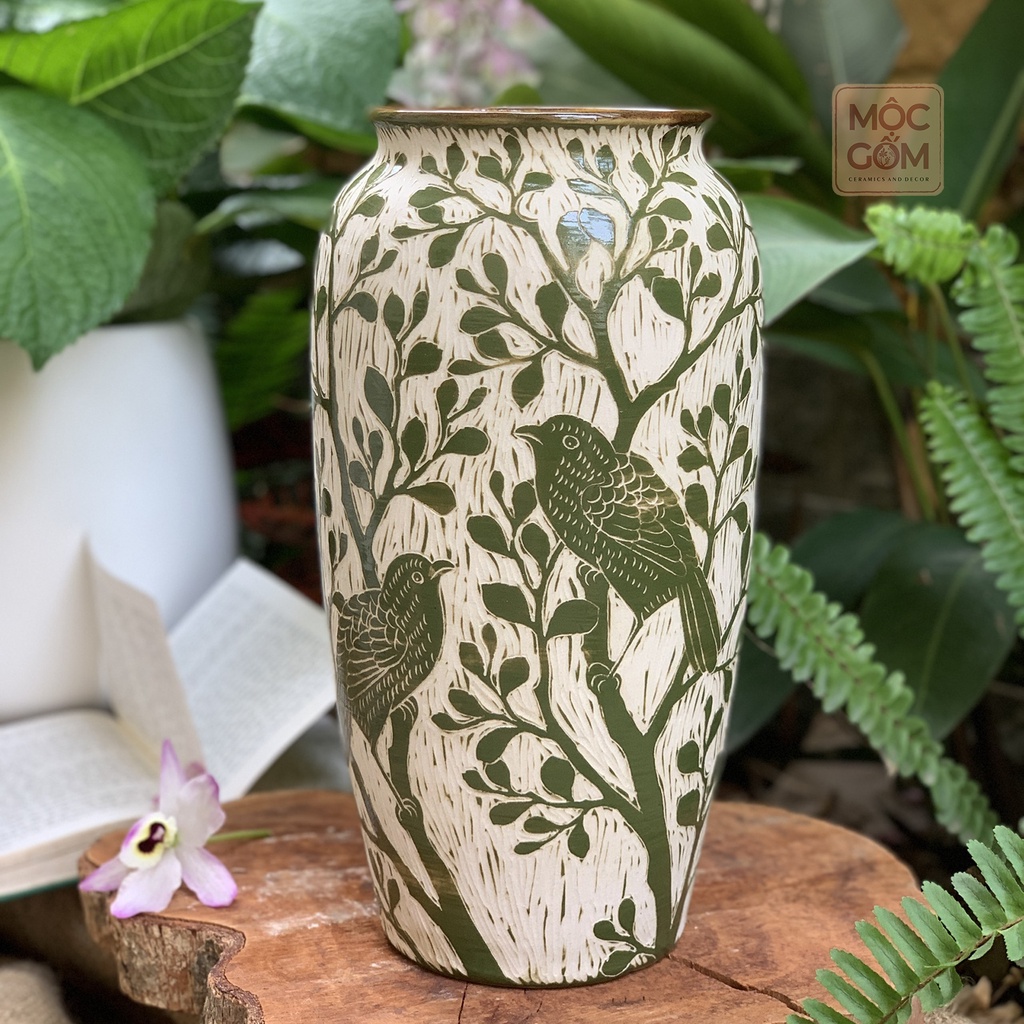 Nhà cửa & Đời sống > Trang trí nhà cửa > Bình trang trí || Bình hoa Bát Tràng gốm khắc nổi họa tiết chim trên cành cây | Mộc Gốm MG107Còn hàng