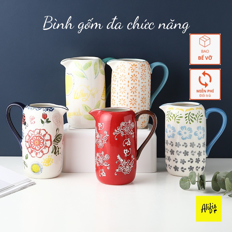 Bình hoa, bình đựng nước 950ml đa chức năng bằng gốm nhiều họa tiết – trang trí phòng khách