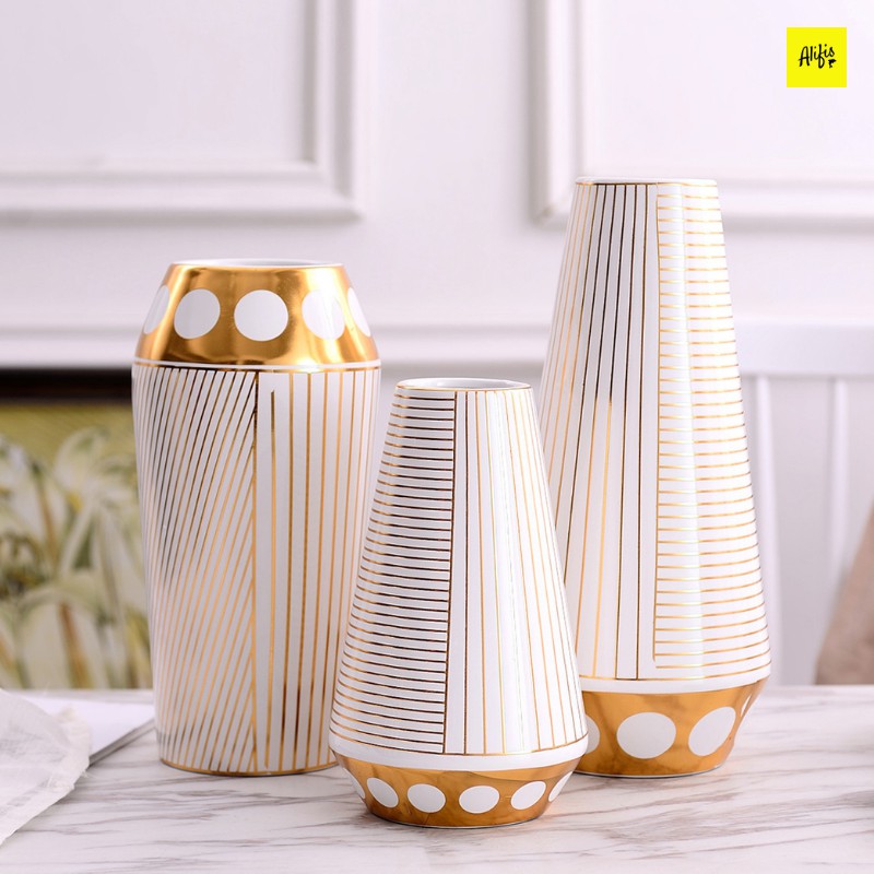 Giới thiệu Bình hoa, bình hoa gốm kẻ viền vàng cao cấp - trang trí phòng khách