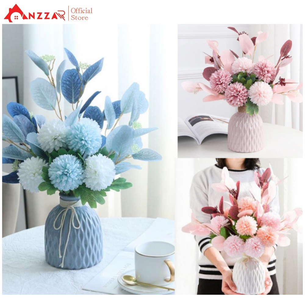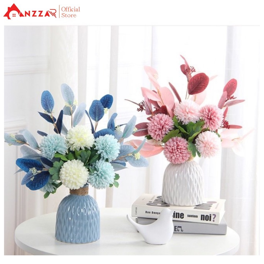 Giới thiệu [Mã giảm 10% đơn 99K] Bình hoa bồ công anh điểm lá bạch đàn trang trí phòng khách phong cách Hàn Quốc Anzzar LHB-02