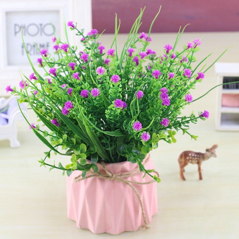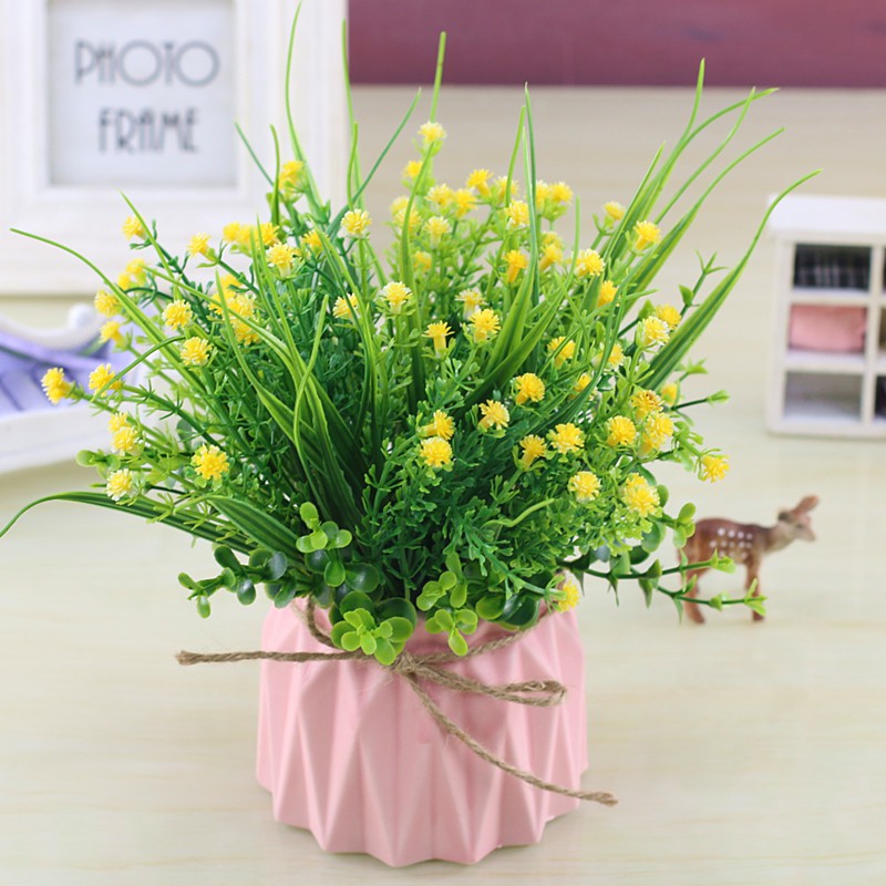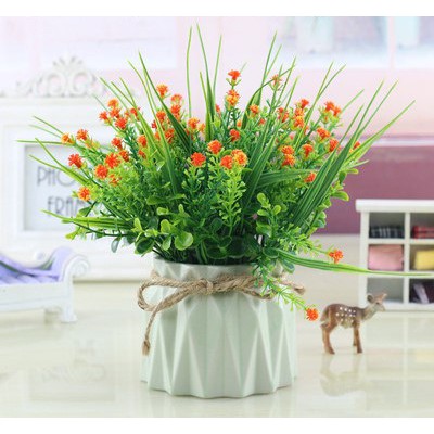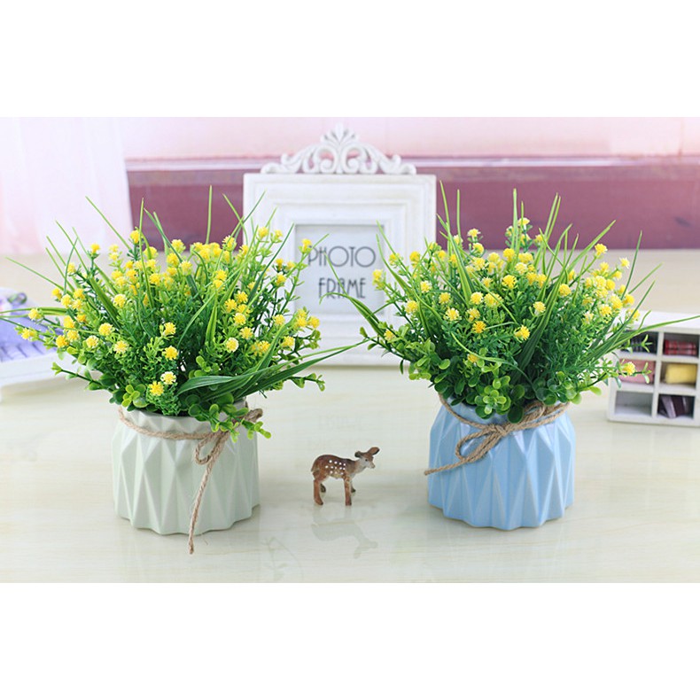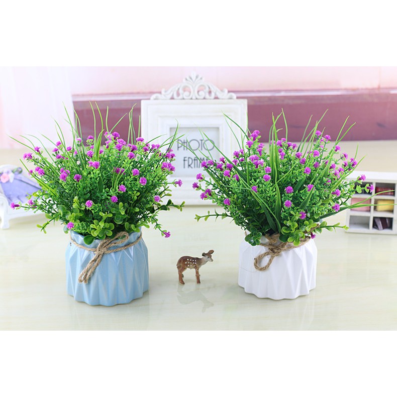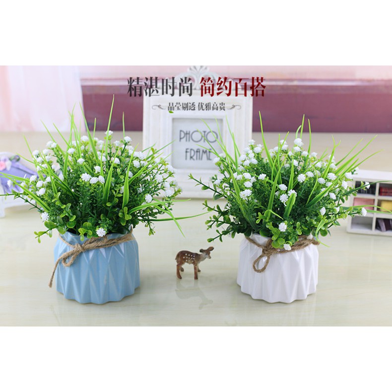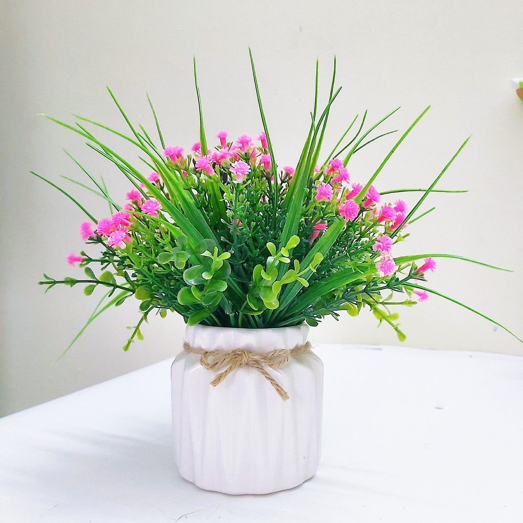 Nhà cửa & Đời sống > Trang trí nhà cửa > Hoa trang trí || Bình hoa cỏ baby nhân tạo, để bàn, kệ tủ trang trí nhà cửa, chậu sứ mini gân sọc (Kèm Bình )Còn hàng