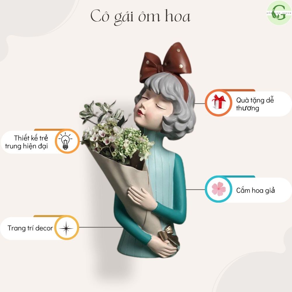 Sản phầm: Bình hoa cô gái- Cô gái cắm hoa,ôm hoa-Lọ hoa cô gái-Tượng cô gái trang trí decor