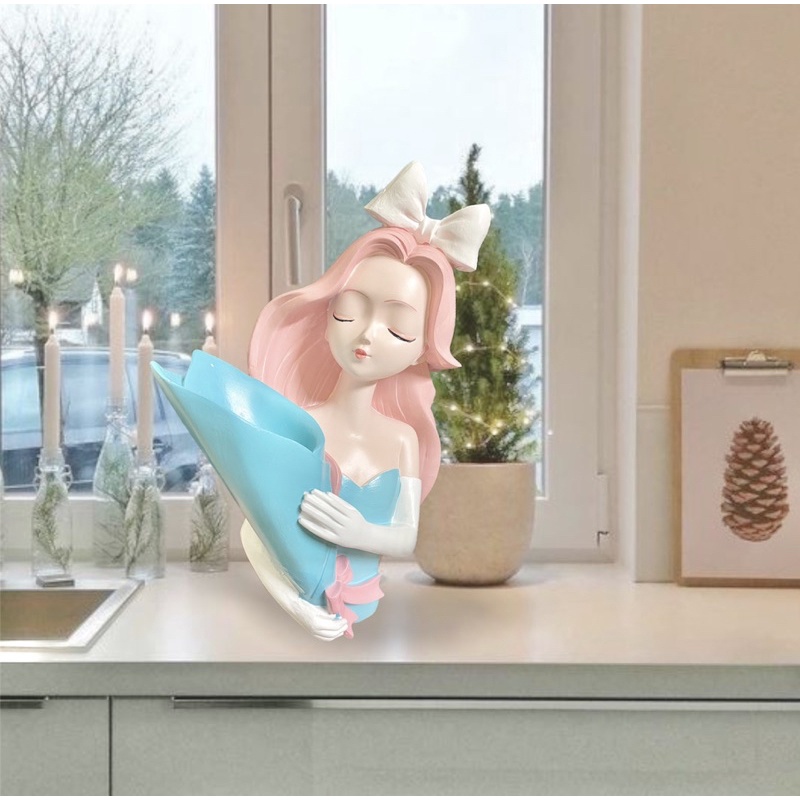 Nhà cửa & Đời sống > Trang trí nhà cửa > Bình trang trí || Bình hoa cô gái ôm hoa lọ hoa decorCòn hàng