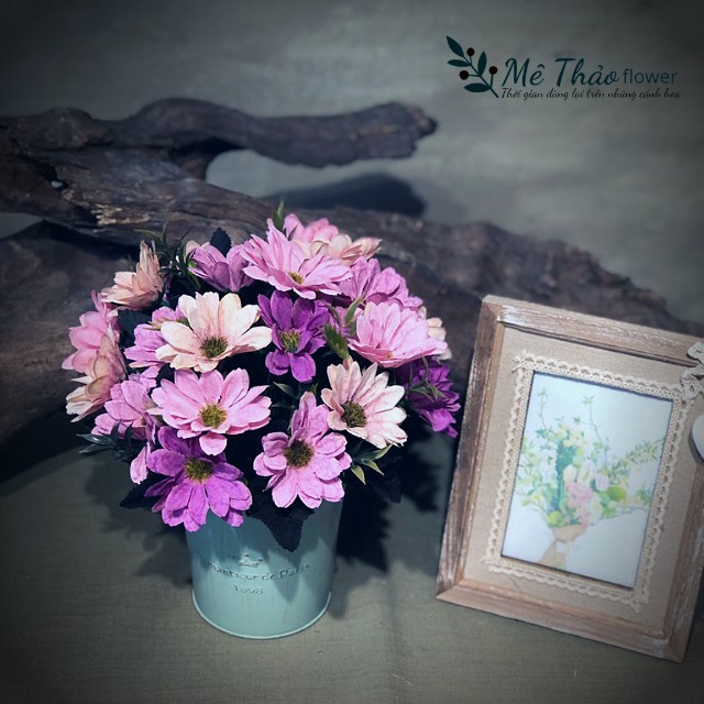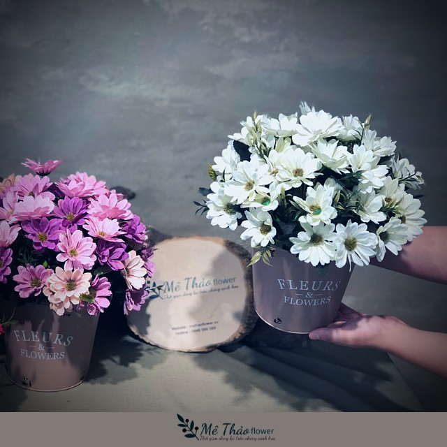 Bình Hoa Cúc Giả Kèm Hộp Sắt Vintage Trang Trí Nhà, Lọ Hoa Decor Shop, Quán Cafe, Trang Trí Phòng Khách Mê Thảo Flower