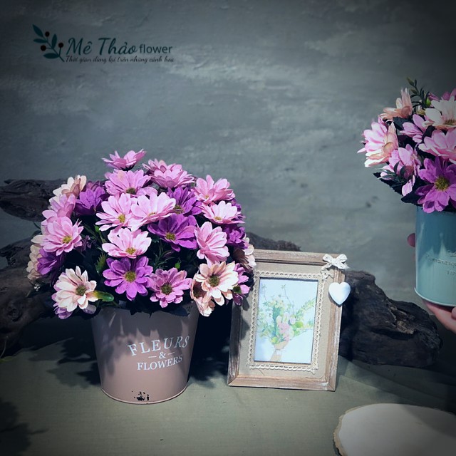 Nhà cửa & Đời sống > Trang trí nhà cửa > Bình trang trí || Bình Hoa Cúc Giả Kèm Hộp Sắt Vintage Trang Trí Nhà, Lọ Hoa Decor Shop, Quán Cafe, Trang Trí Phòng Khách Mê Thảo FlowerCòn hàng