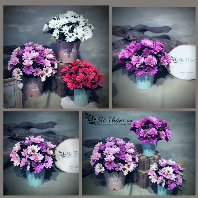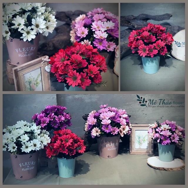 Bình Hoa Cúc Giả Kèm Hộp Sắt Vintage Trang Trí Nhà, Lọ Hoa Decor Shop, Quán Cafe, Trang Trí Phòng Khách Mê Thảo FlowerNgập tràn niềm vui mỗi ngày với chậu hoa cúc tươi xinh đậm chất vintage!